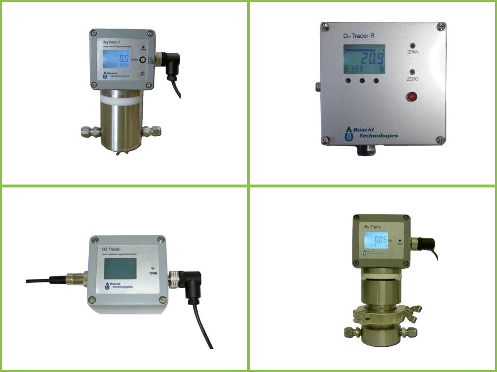 Roscid Technologies is a global leader in manufacturer of precision measuring instruments for dew point, relative humidity, oxygen and hydrogen. Lead by a team of engineers with over a 100 years’ experience in the field of sensing technologies. Roscid Technologies sensors, transmitters, hygrometer and analyzers cover the measuring range of trace levels (PPM) to the percent range. Roscid also offers one stop shopping in designing and manufacturing gas analyzing panels for oxygen, hydrogen and moisture. The product range includes: